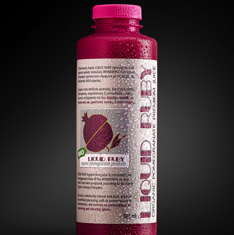 Sucul de rodie organic LIQUID RUBY este rezultatul excelenței acestui fruct cultivat în livada companiei THAVMASIO RODI din districtul Almyros din Grecia Centrală.